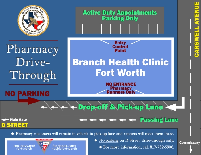 The Naval Branch Health Clinic at NAS JRB Fort Worth is open by appointment only. Please call the appointment line at 817-782-5900.