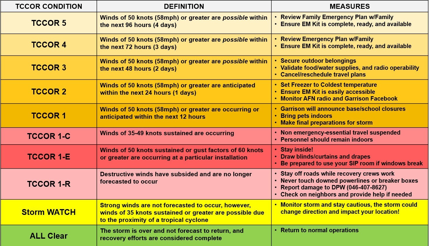 All personnel and their families should review their Navy Family Accountability and Assessment System (NFAAS) account (https://navyfamily.navy.mil) and review hurricane checklists.